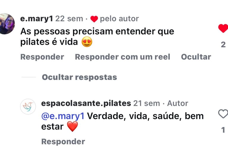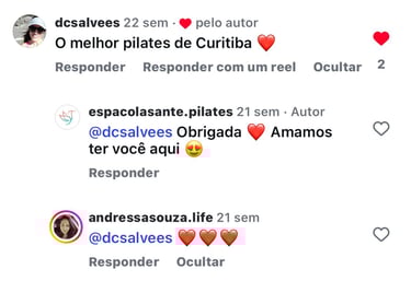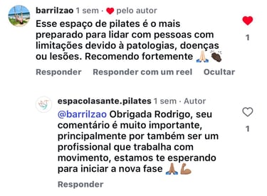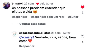 Minha experiência neste espaço tem sido muito gratificante. O pilates proporciona atenção a todas as partes do corpo entregando mais disposição para as demais atividades diárias. A consciência corporal resgata nossa memória de quem desejamos e podemos ser. Para cada aluno do grupo há uma atenção especial da parte dos professores e isso faz muita diferença.