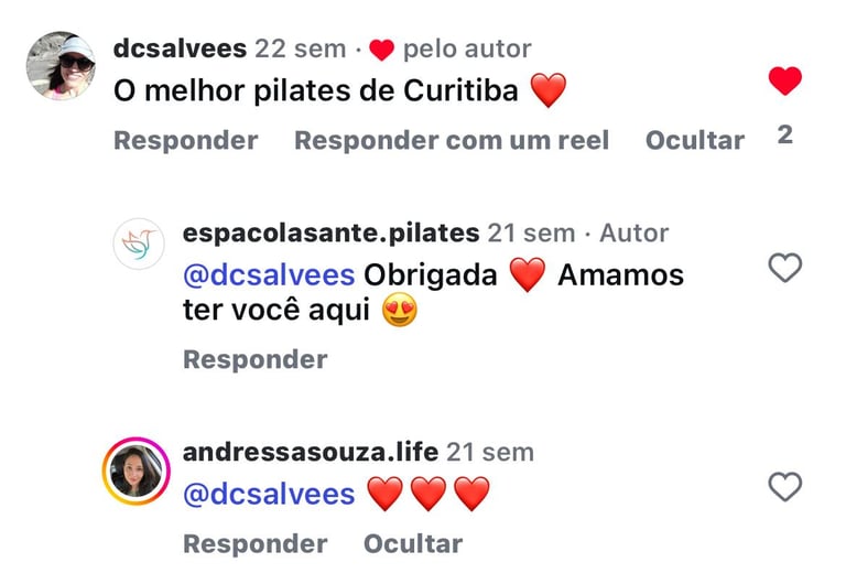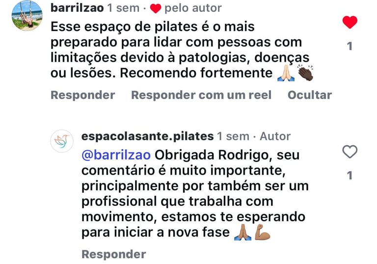 Quando comecei a dois meses atrás não estava nem andando direito de tanta dor no quadril, os médicos sugeriram até cirurgia, porém optei por fazer aulas no espaço primeiro. E foi a melhor escolha, estou sem dor, minha depressão foi embora. Amo suas aulas. obrigada 😍😍😍